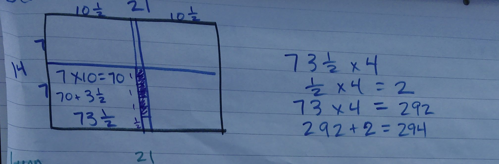 21 x 14 = 4 x (10.5 x 7) and
