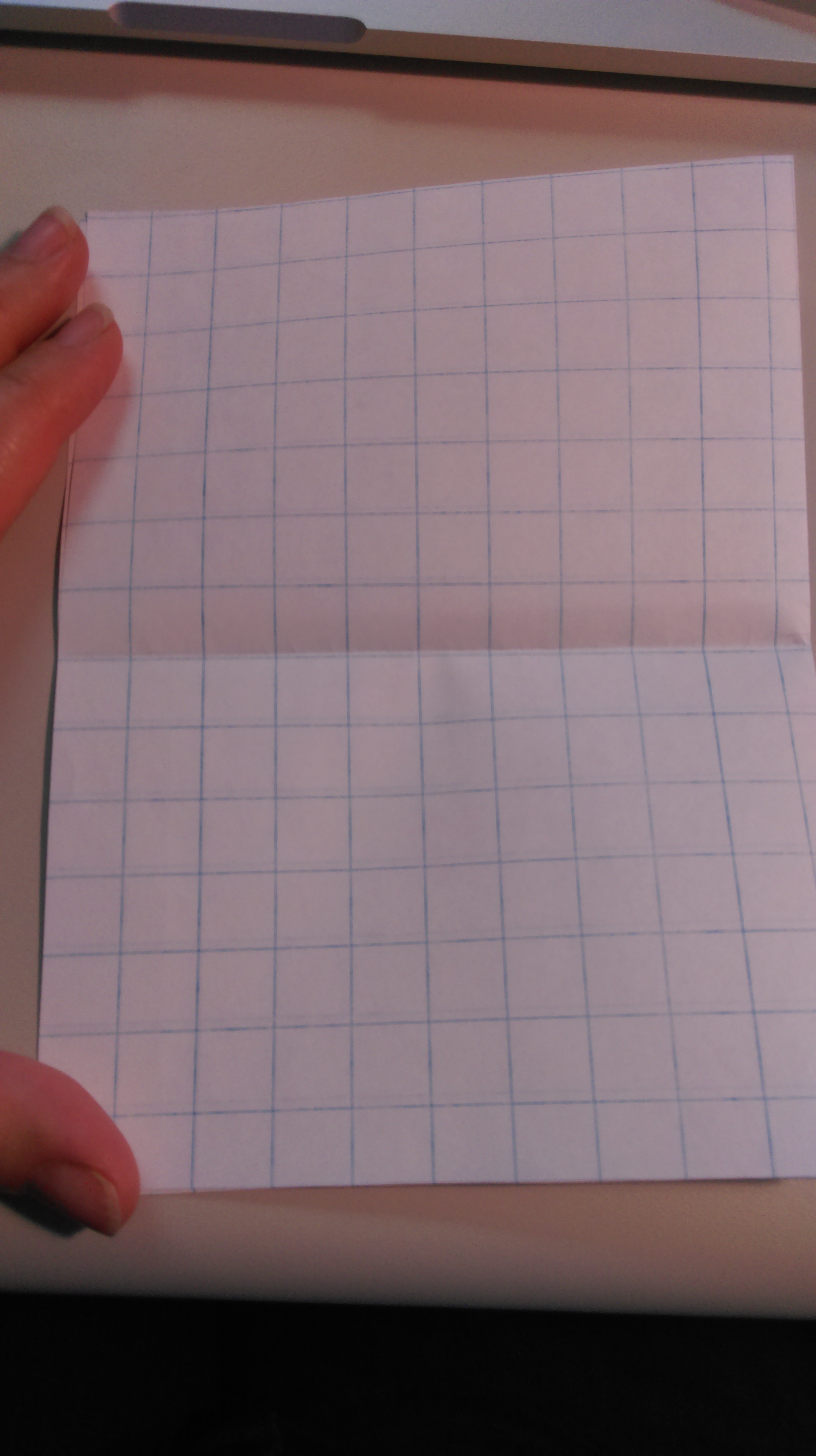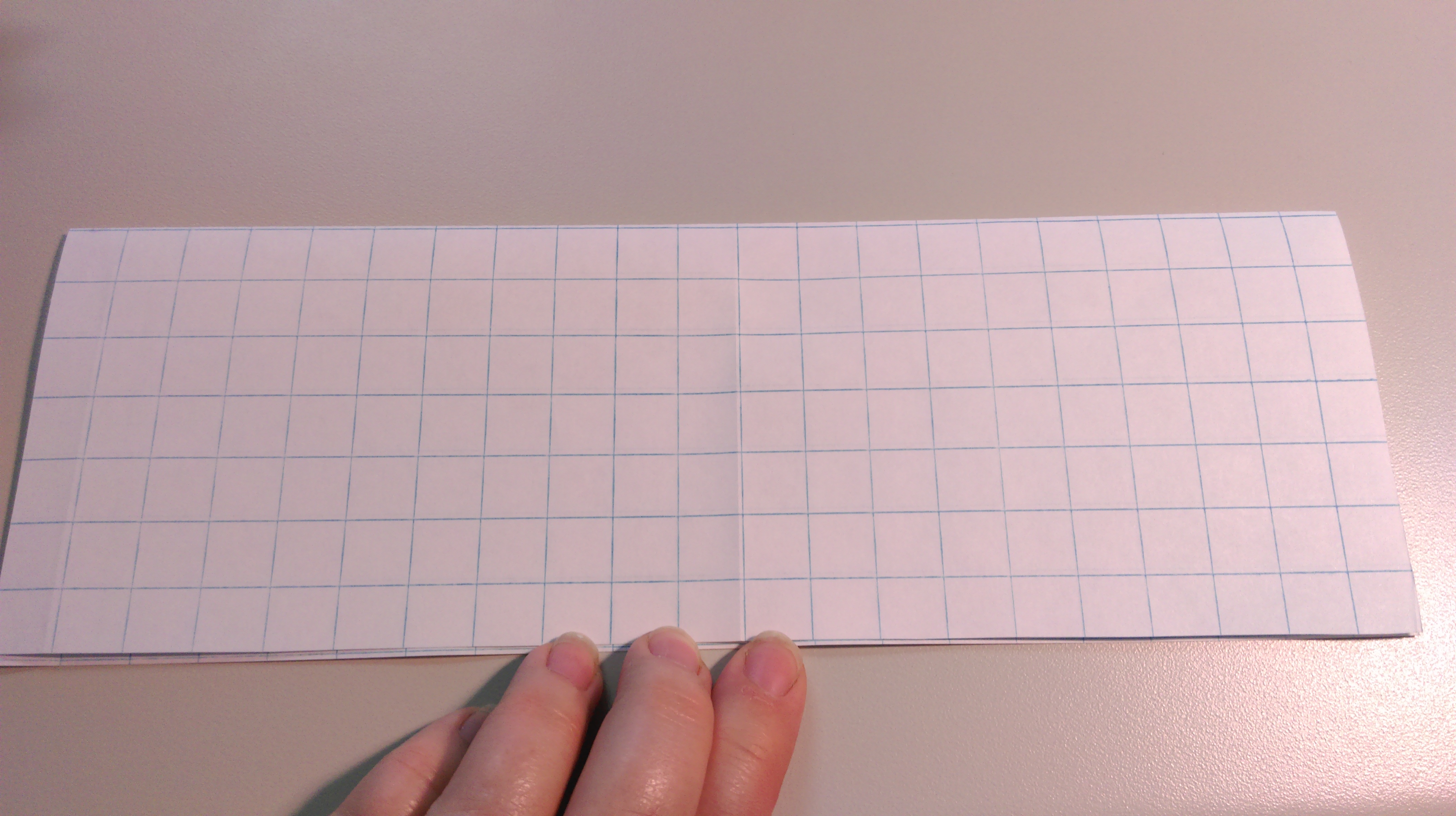 In the next section, L also began by folding her rectangle in half, but the other way: