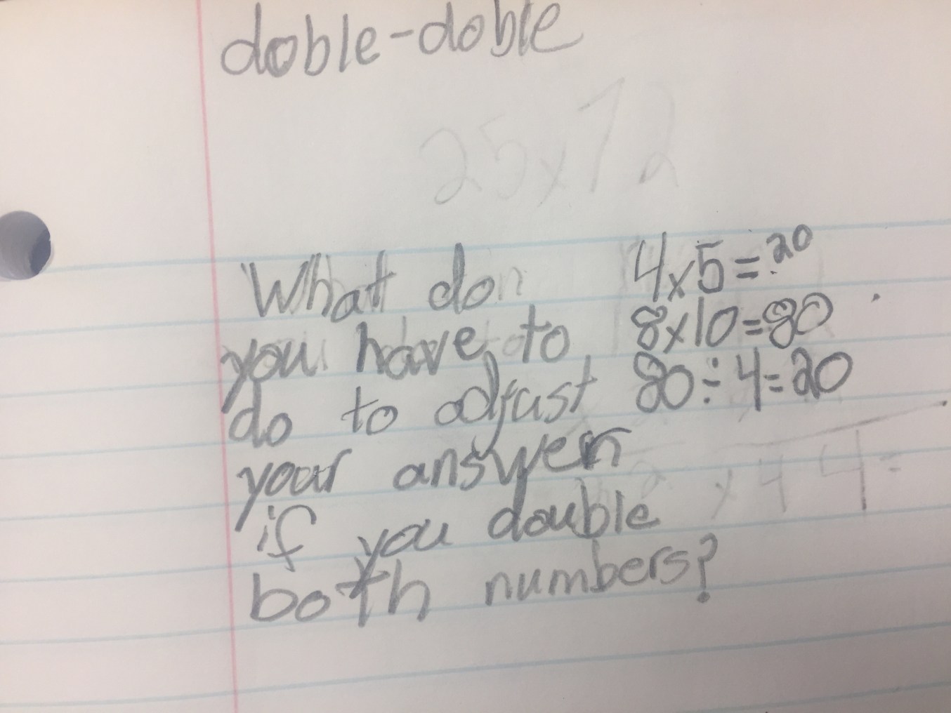 People sometimes get hung up on tech in the same way. Recently, I had the chance to share some outstanding work Kristin Gray got from her students when she asked them to take out their notebooks and write down what they were wondering about doubling and halving. They’d been working on 14 x 25 = 7 x 50. Check out these conjectures: